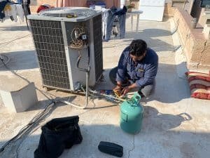 - فني تكييف يقوم بعمل الصيانة